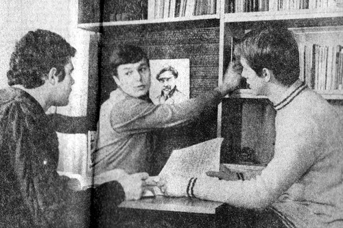 Im Lernkollektiv mit Ernst, Christian und Leninbild in der UNI-Zeitung